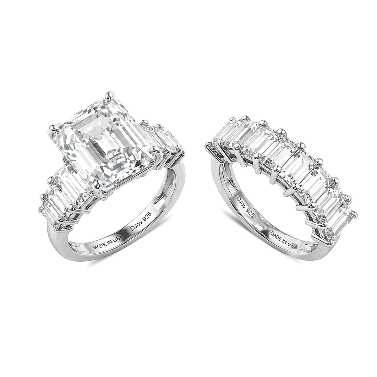 D'Joy Moissanite 10.65 ctw Set of 2 Elite Spark Ring in Rhodium Over Sterling Silver (Size 9.0)