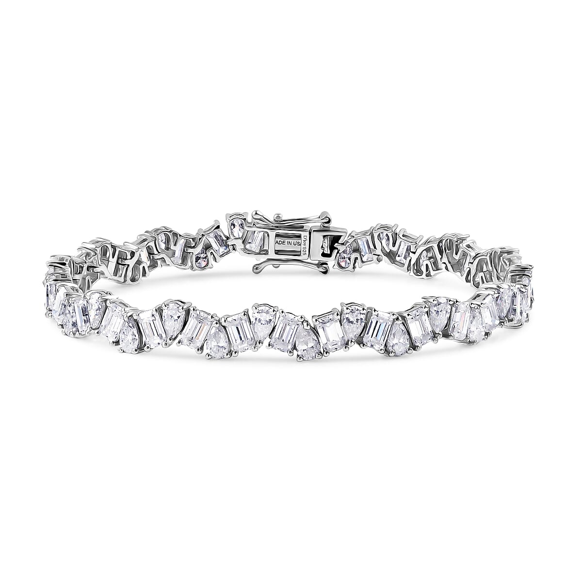 D'Joy Moissanite 12.65 ctw Sea Wave Bracelet in Rhodium Over Sterling Silver (6.50 In)
