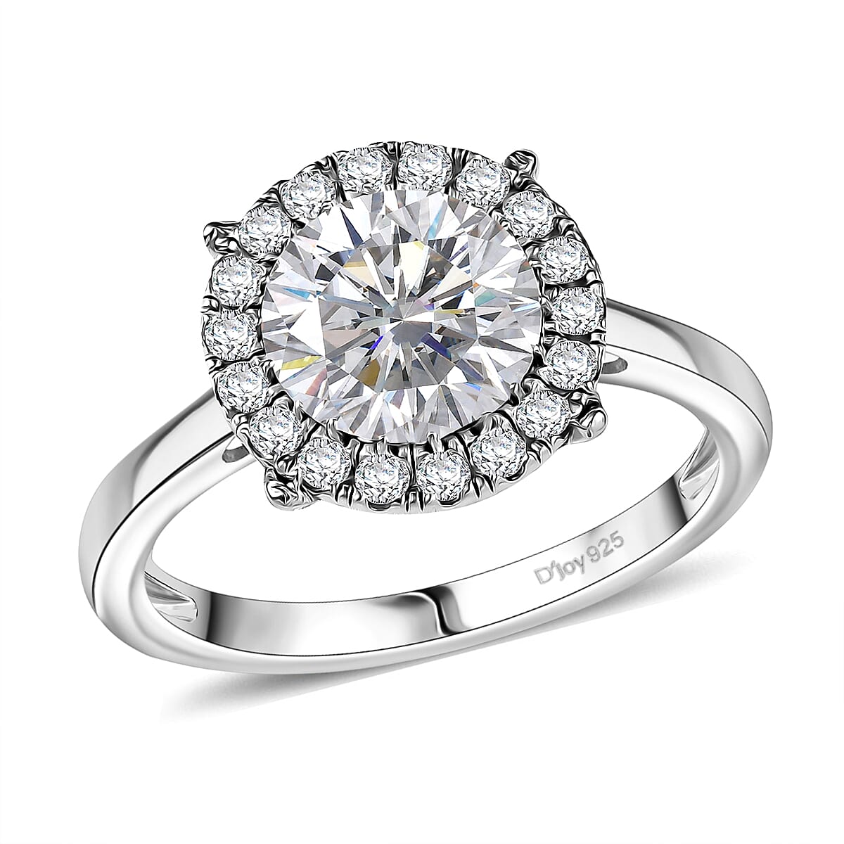 D'Joy Moissanite 2.10 ctw Halo Ring in Rhodium Over Sterling Silver (Size 7.0)