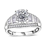 D'Joy Moissanite 3.10 ctw Art Deco Ring in Rhodium Over Sterling Silver (Size 10.0)