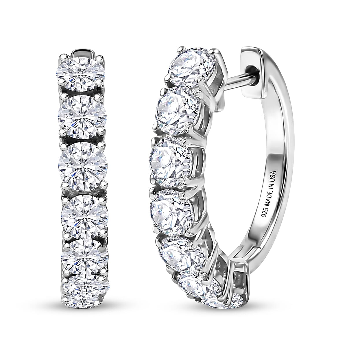 D'Joy Moissanite 3.20 ctw Hoop Earrings in Rhodium Over Sterling Silver