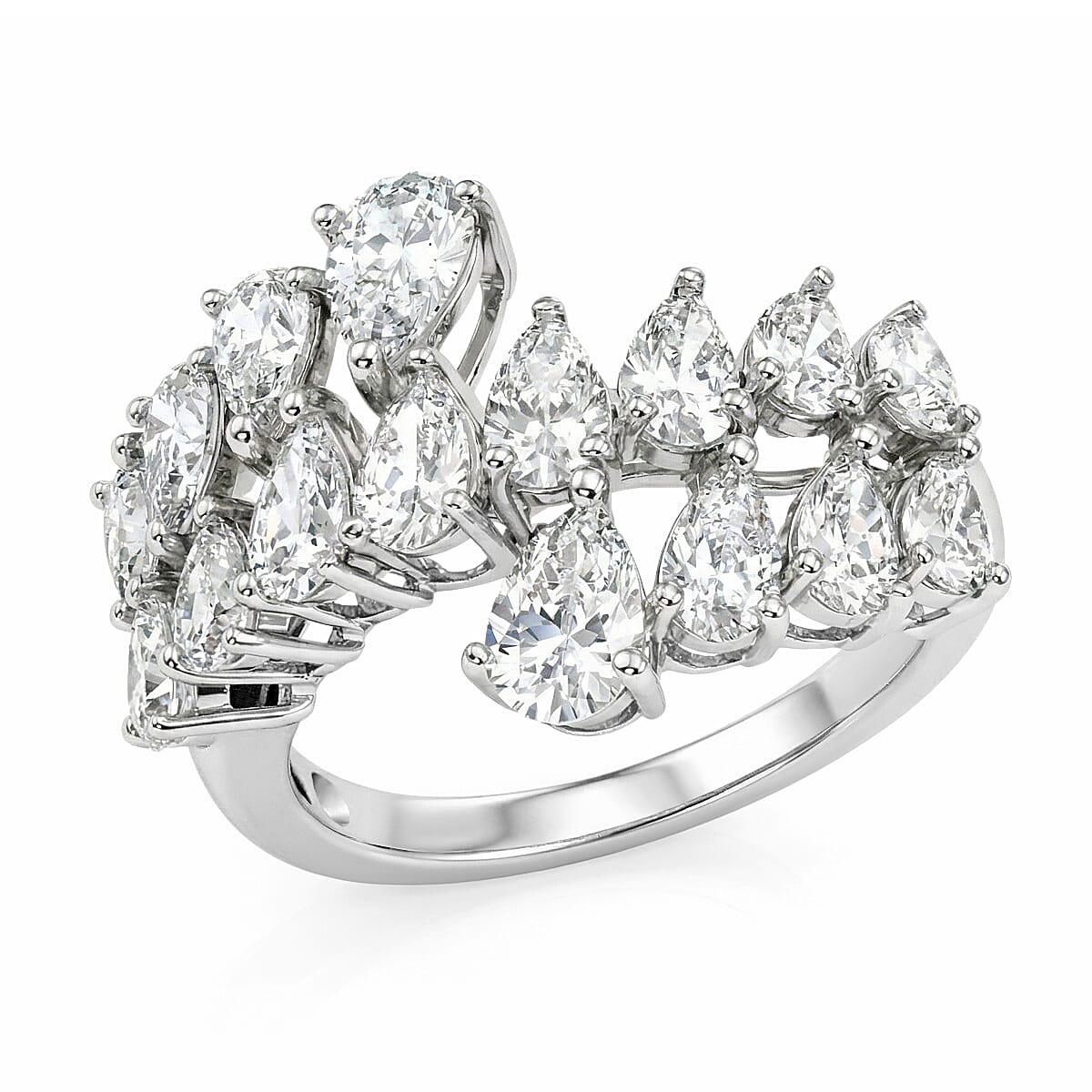 D'Joy Moissanite 3.20 ctw Sparkle Dew Ring in Rhodium Over Sterling Silver (Size 7.0)