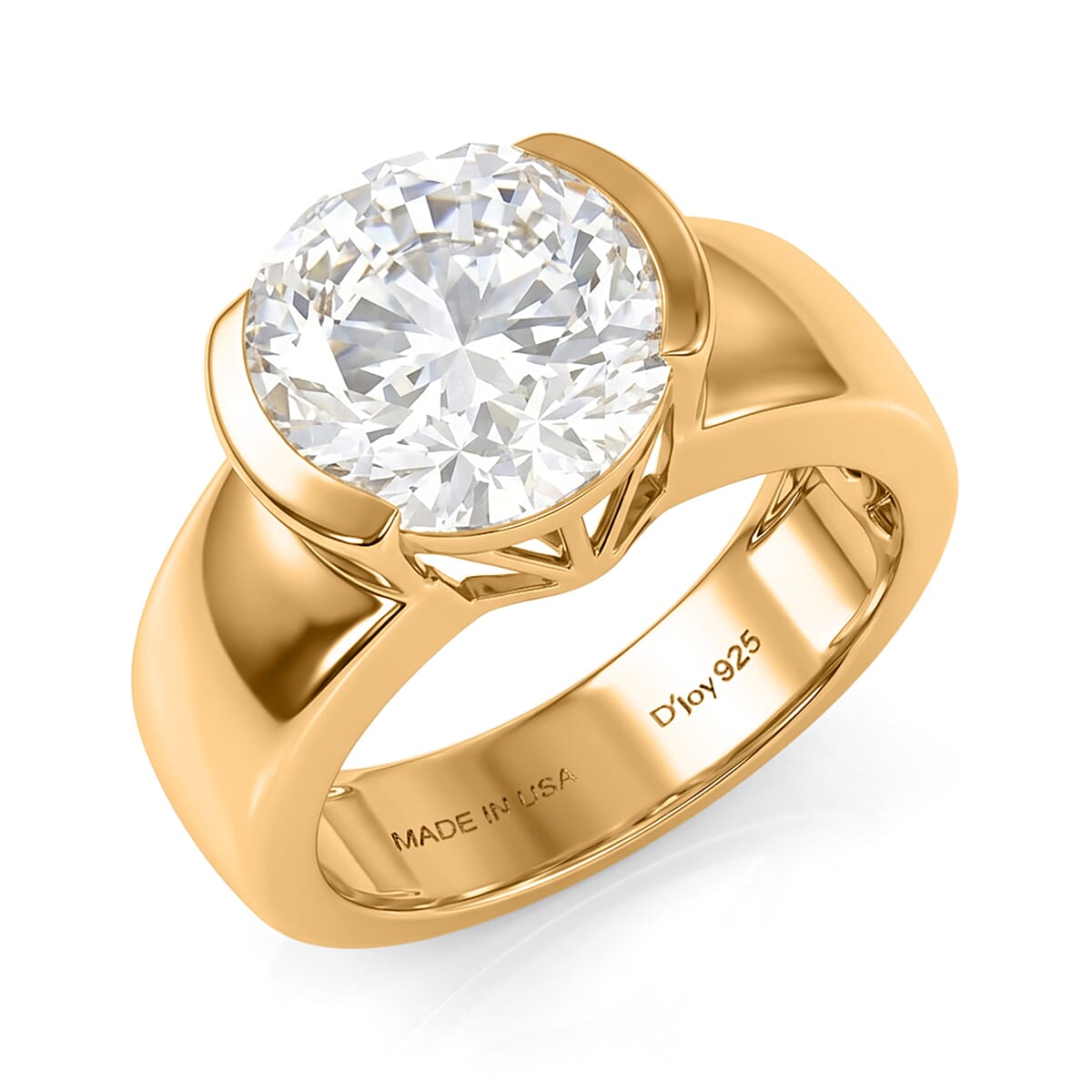 D'Joy Moissanite 4.00 ctw Solitaire Ring in 18K Vermeil Yellow Gold Over Sterling Silver (Size 9.0)