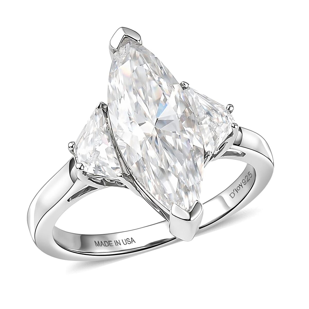D'Joy Moissanite 4.50 ctw Trinity Spark Ring in Rhodium Over Sterling Silver (Size 6.0)