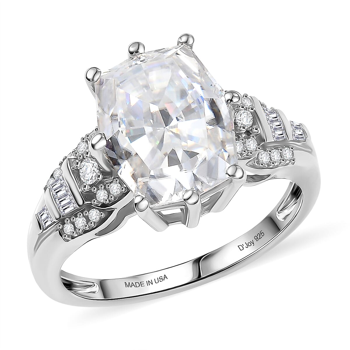 D'Joy Moissanite 4.65 ctw The Spotlight Spark Ring in Rhodium Over Sterling Silver (Size 9.0)