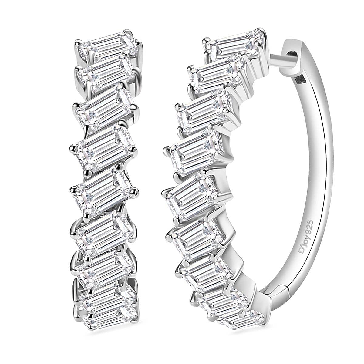 Enhance your look with these D’Joy moissanite hoop earrings in 925 sterling silver. These elegant gemstone hoop earrings catch light from every angle perfectly. You will appreciate how they complement both casual and formal attire.