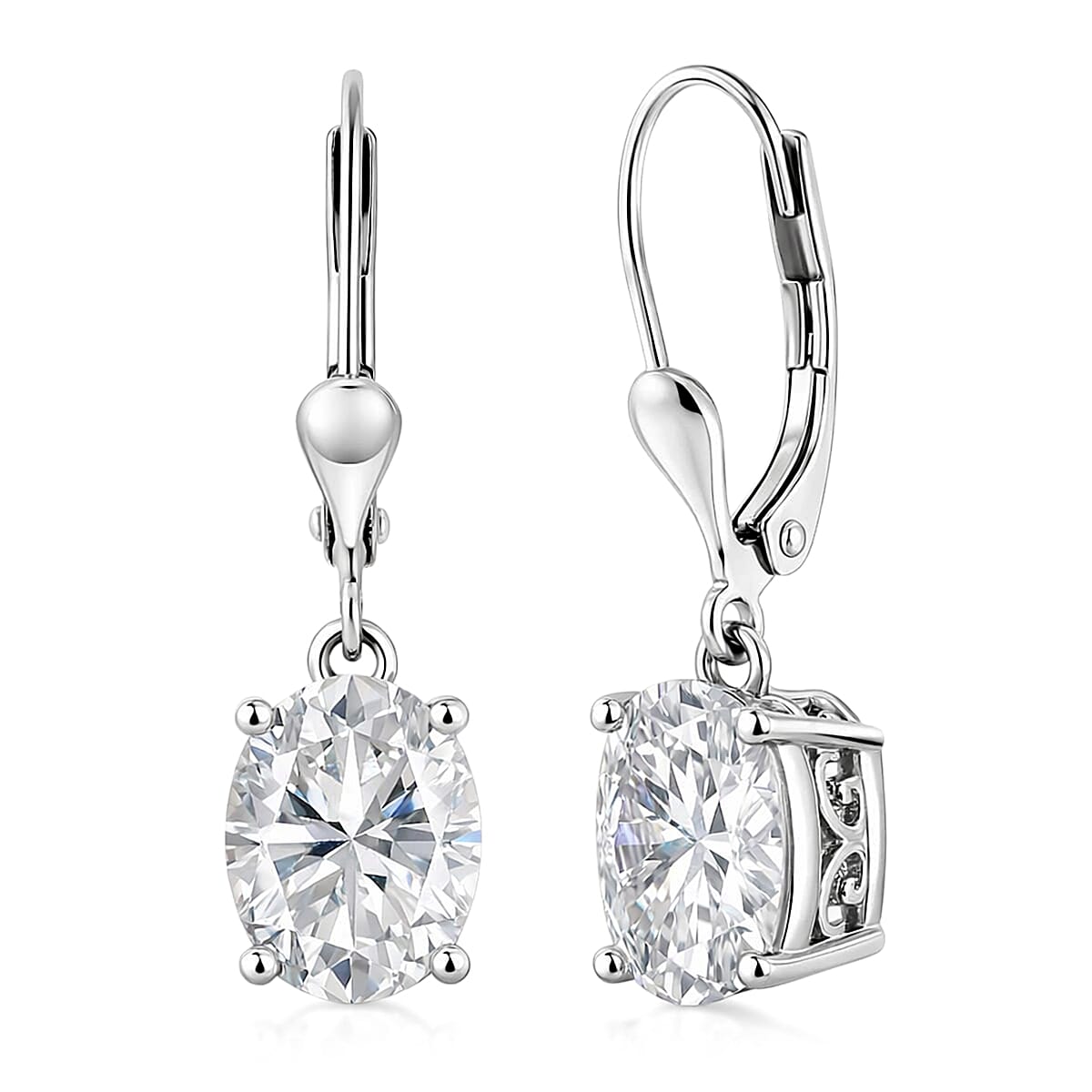 D'Joy Moissanite 5.60 ctw Eternal Solitaire Earrings in Rhodium Over Sterling Silver