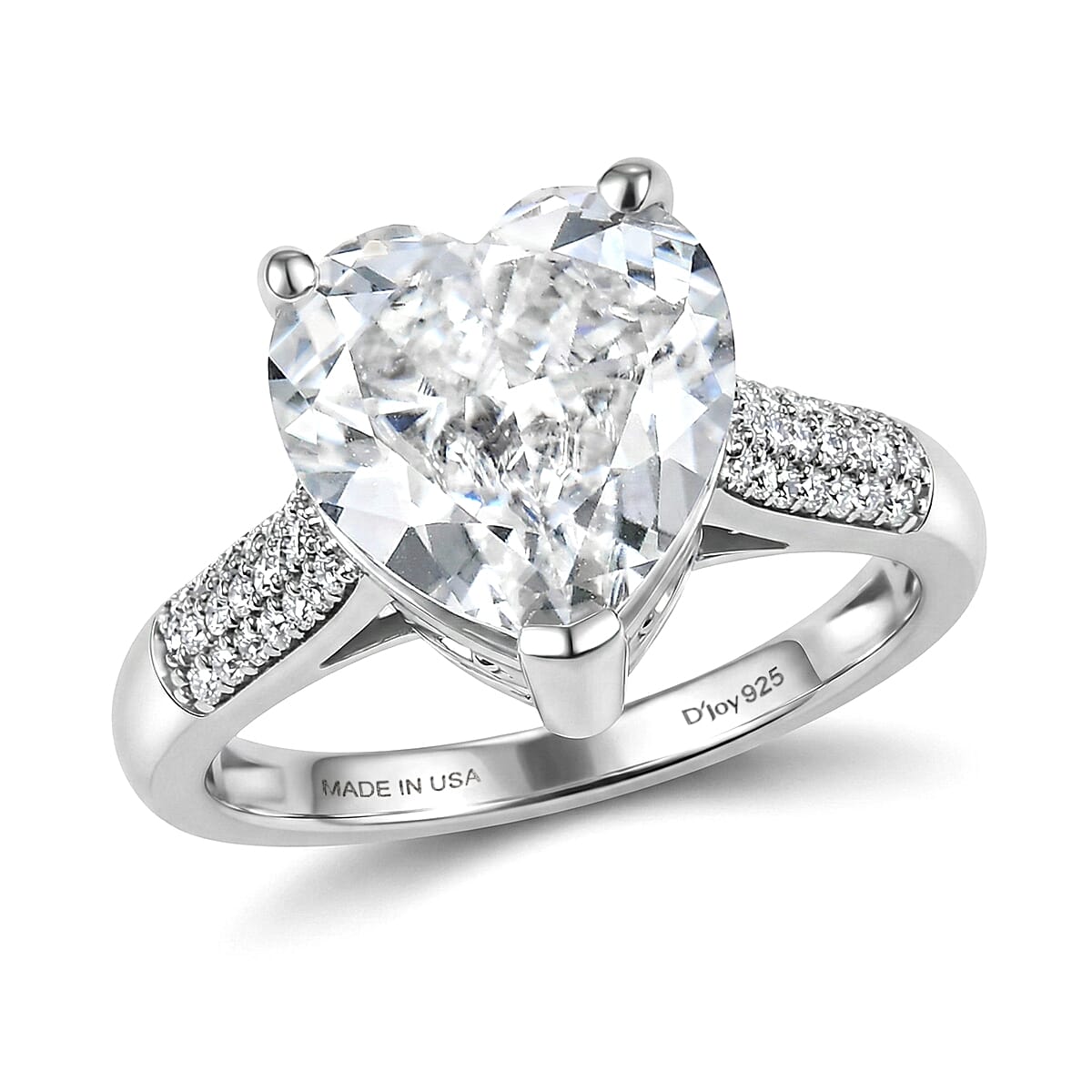 D'Joy Moissanite 6.40 ctw Heart Ring in Rhodium Over Sterling Silver (Size 7.0)