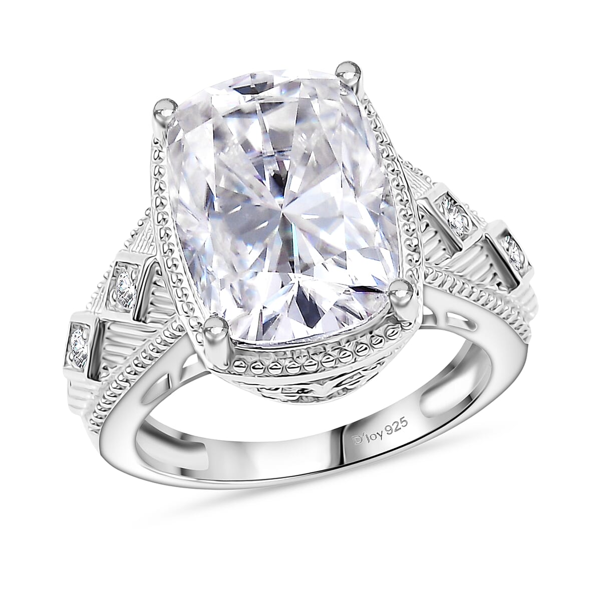 D'Joy Moissanite 7.60 ctw Celebrity Ring in Rhodium Over Sterling Silver (Size 9.0)