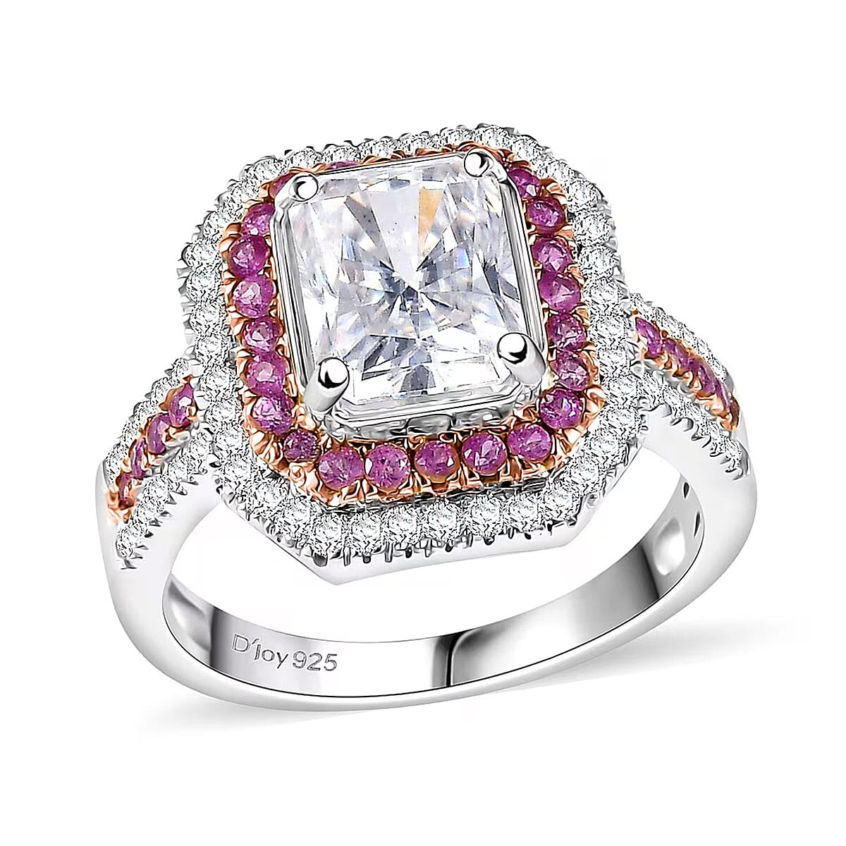 D'Joy Moissanite and Madagascar Pink Sapphire 3.50 ctw Art Deco Ring in Rhodium Over Sterling Silver (Size 5.0)