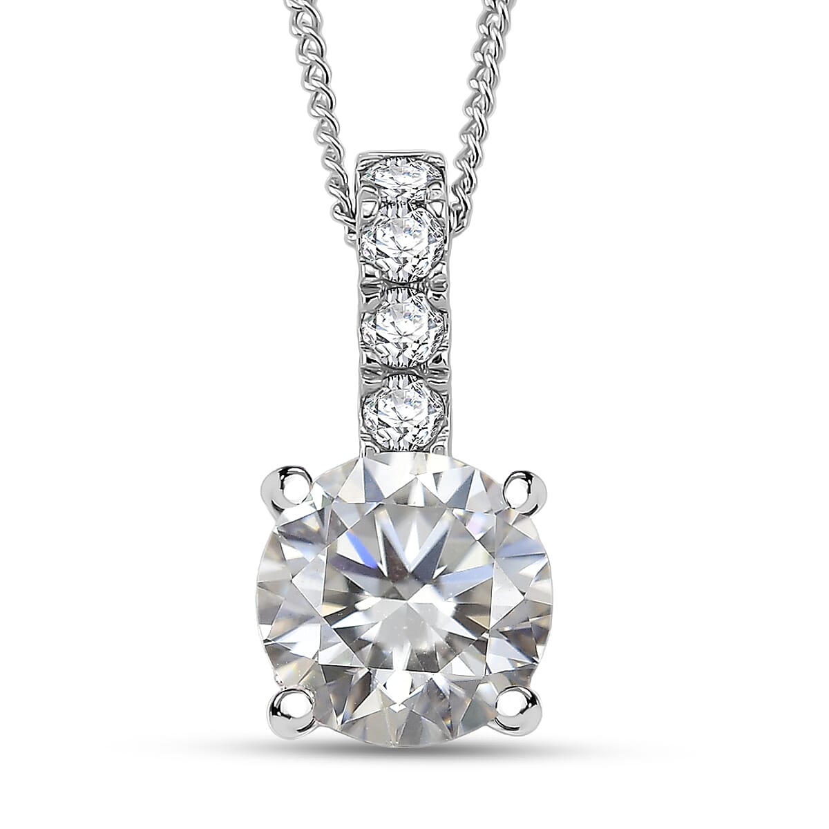 D'Joy Moissanite Bridal Pendant Necklace in Rhodium Over Sterling Silver 2.80 ctw (18 Inches)