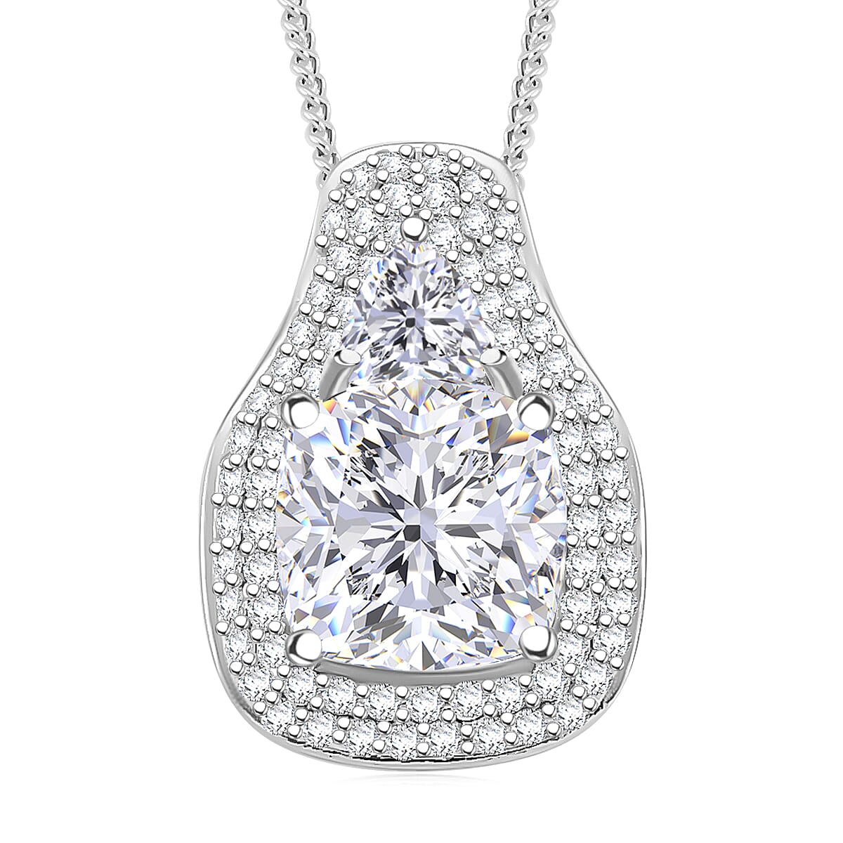 D'Joy Moissanite Pendant Necklace in Rhodium Over Sterling Silver 4.40 ctw (18 Inches)