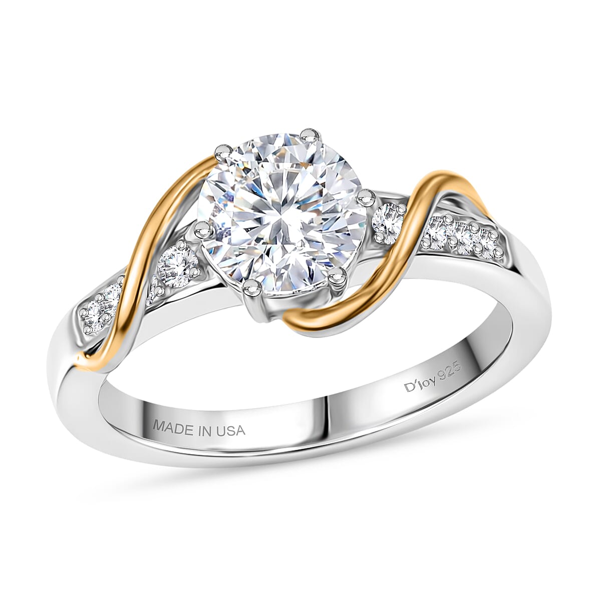 D'Joy Moissanite (Rnd 6.5mm) Ring in 18K Vermeil YG and Platinum Over Sterling Silver (Size 10.0) 1.10 ctw