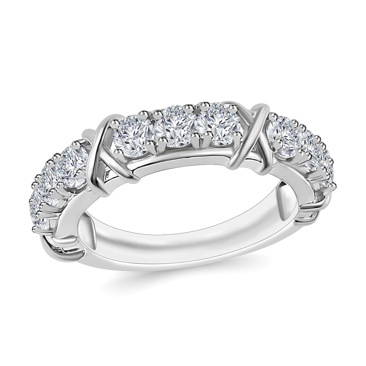 D'Joy Moissanite XOXO Band Ring in Rhodium Over Sterling Silver 0.90 ctw (Size 10.0) (Del. In 10-12 Days)