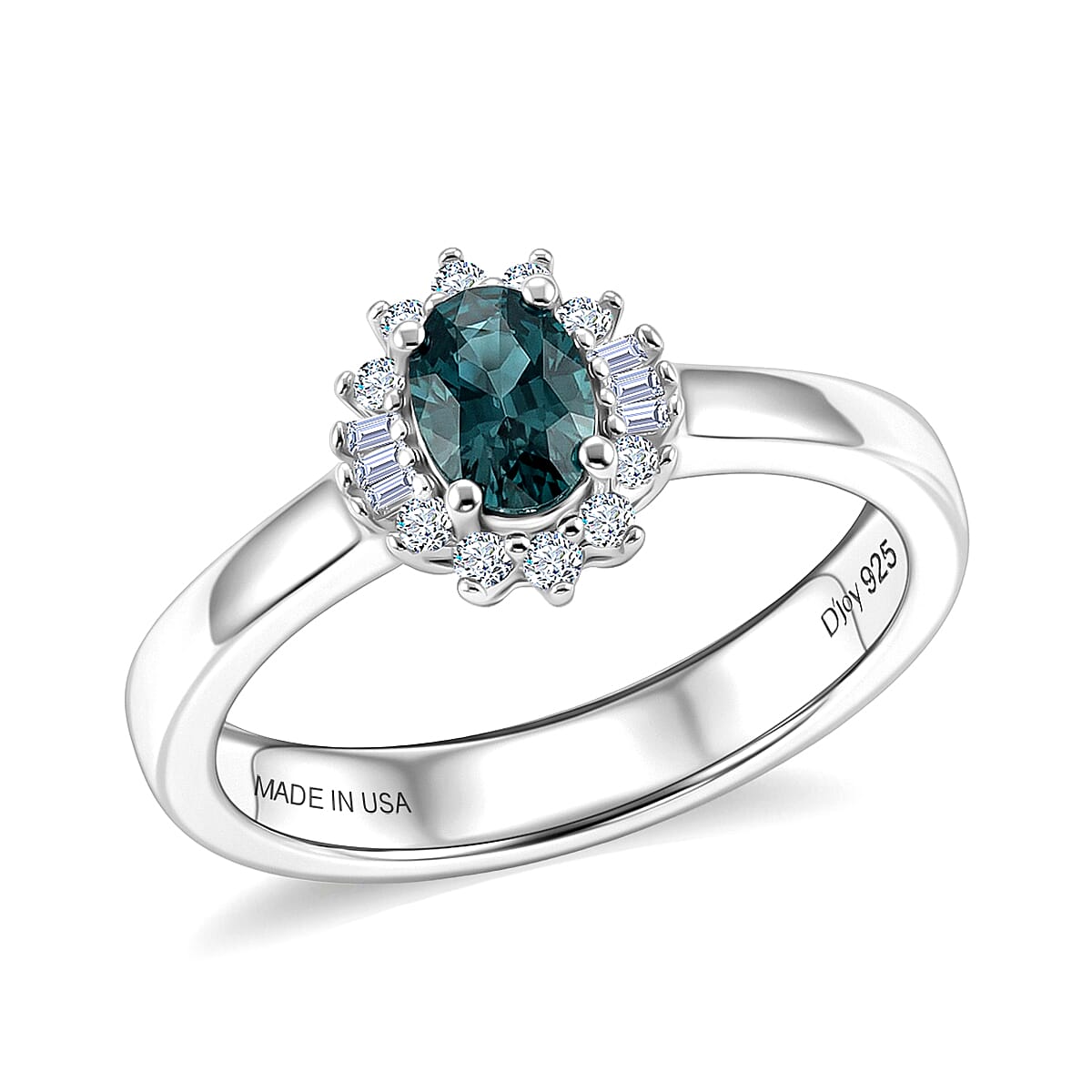D'Joy Montana Sapphire and Diamond 0.80 ctw Sunburst Ring in Rhodium Over Sterling Silver (Size 10.0) (Del. in 8-10 Days)