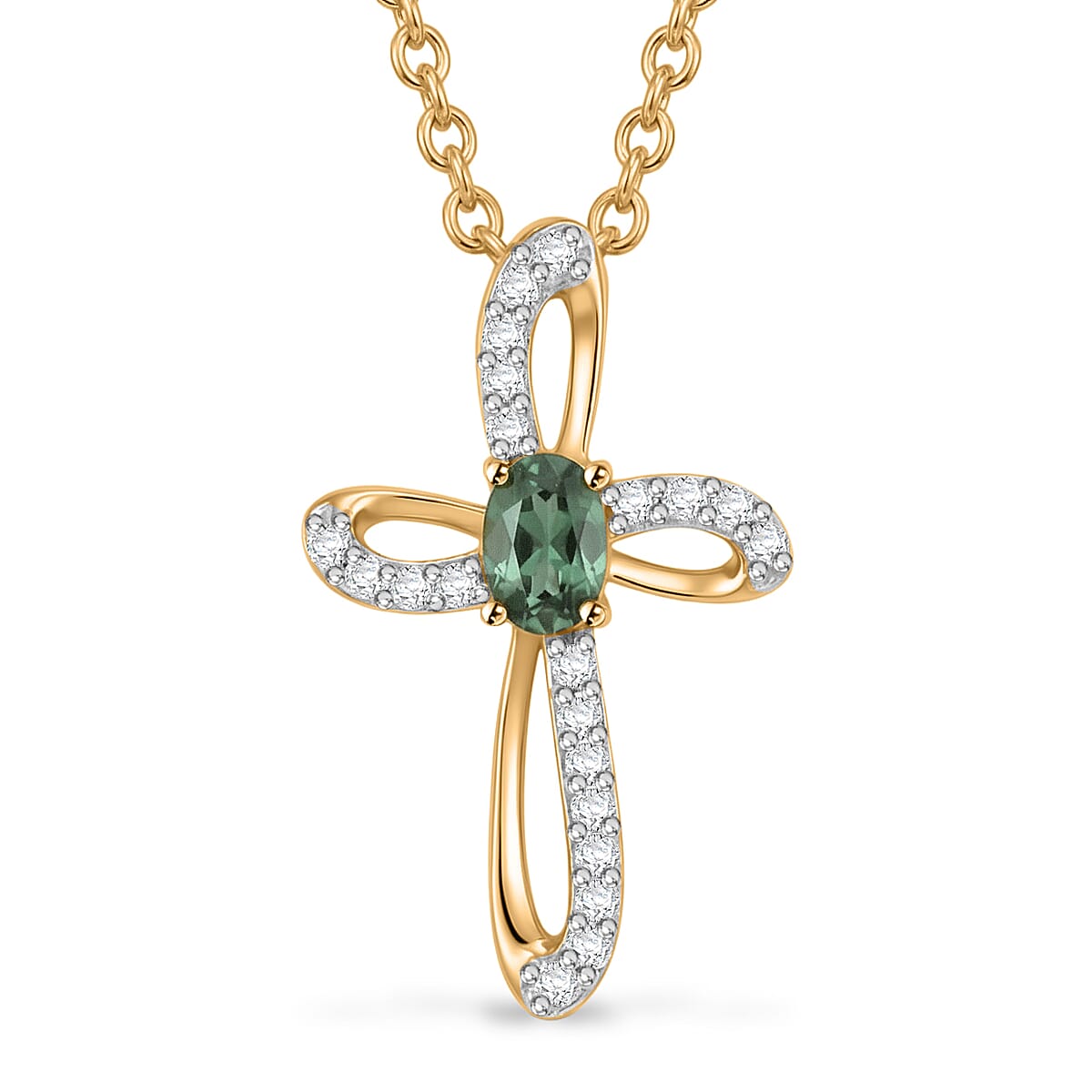 D'Joy Montana Sapphire and White Zircon 0.60 ctw Classic Cross Pendant in 18K Vermeil Yellow Gold Over Sterling Silver with ION Plated YG Stainless Steel Necklace 20 Inches (Del. in 8-10 Days)