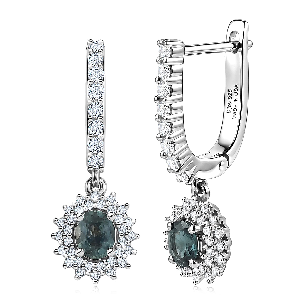D'Joy Montana Sapphire and White Zircon 2.40 ctw Floral Halo Earrings Rhodium Over Sterling Silver (Del. in 8-10 Days)
