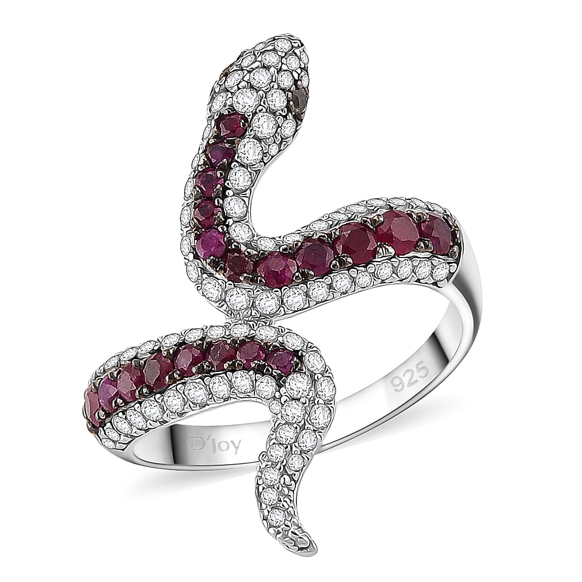 D'Joy Montepuez Ruby and Multi Gemstone 1.90 ctw Serpent Ring in Rhodium Over Sterling Silver (Size 8.0)