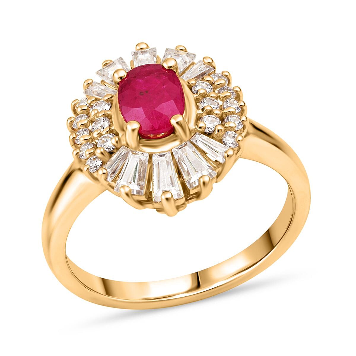 D'Joy Montepuez Ruby, Moissanite Ring in 18K Vermeil YG Over Sterling Silver 2.10 ctw (Size 6.0)