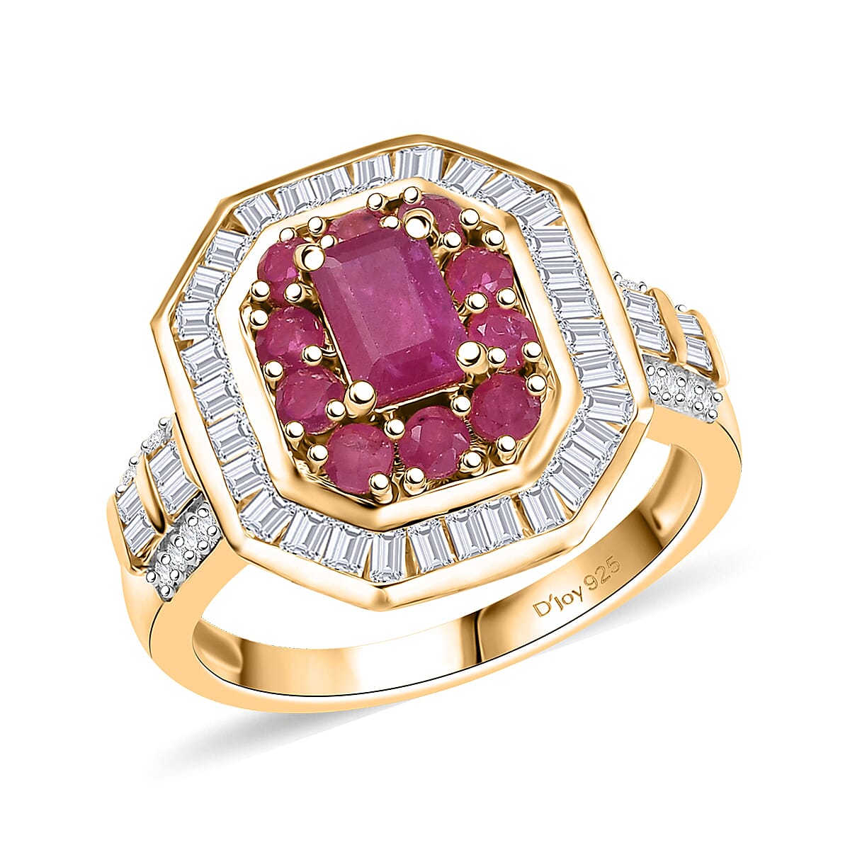 D'Joy Montepuez Ruby, Moissanite Ring in 18K Vermeil YG Over Sterling Silver 2.25 ctw