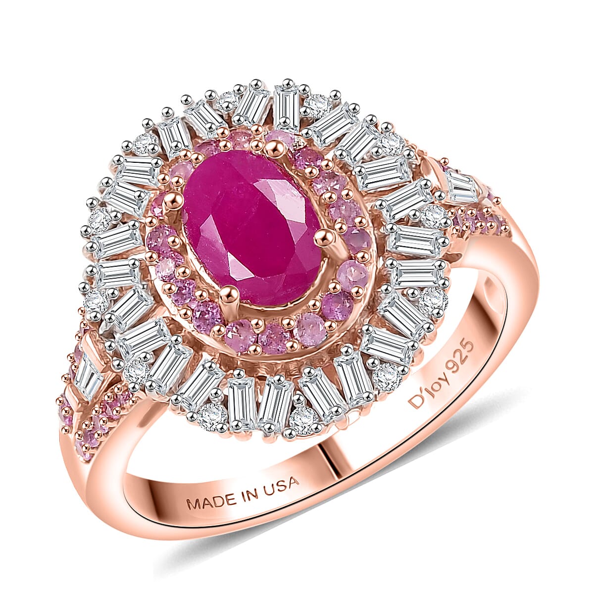 D'Joy Montepuez Ruby, Multi Gemstone Ring in 18K Vermeil RG Over Sterling Silver 1.90 ctw (Size 7.0)