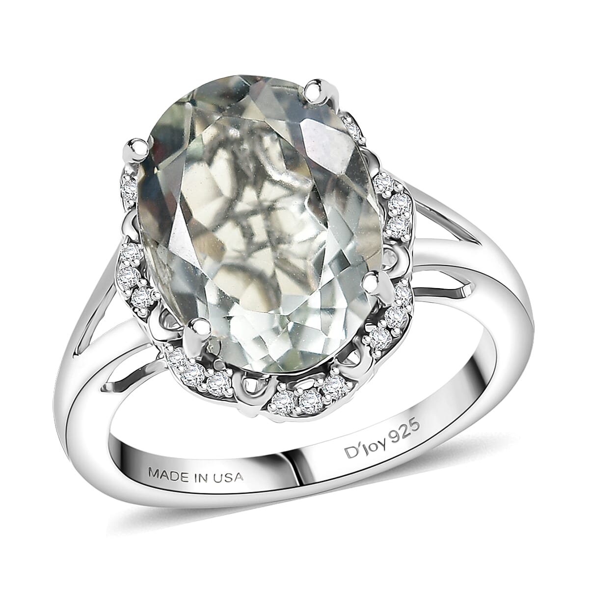 D'Joy Montezuma Prasiolite, White Zircon Ring in Platinum Over Sterling Silver (Size 10.0) 6.10 ctw