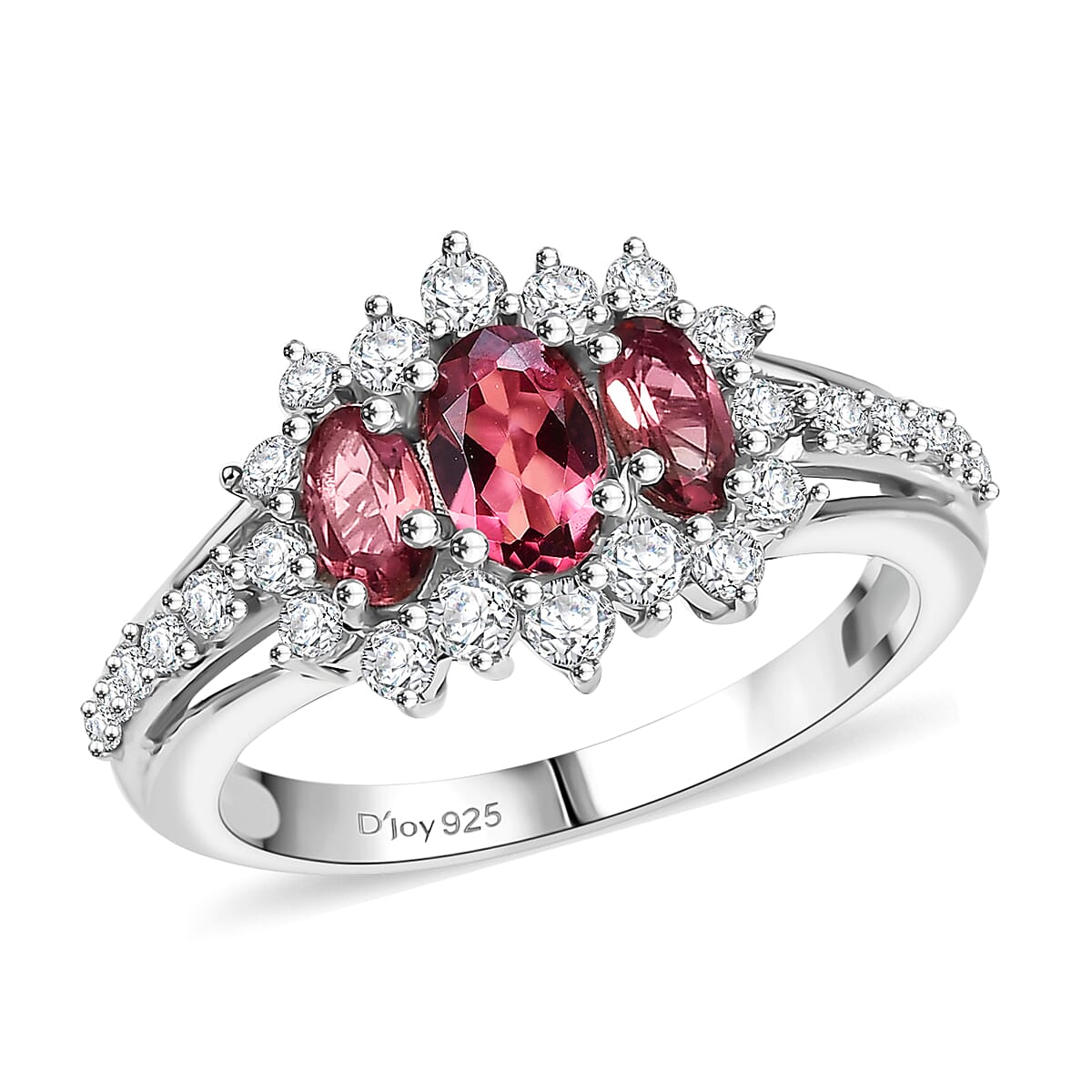 D'Joy Morro Redondo Pink Tourmaline and White Zircon 1.75 ctw Blooming Flower Ring in Rhodium Over Sterling Silver (Size 5.0)