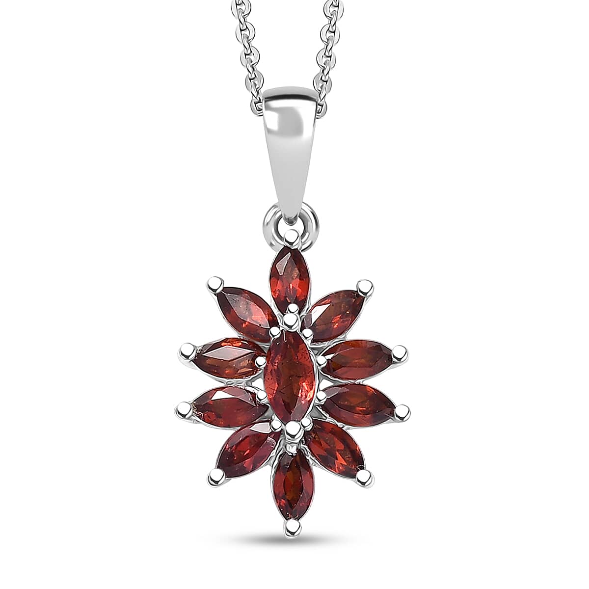 D'Joy Mozambique Garnet 1.20 ctw Pendant Necklace in Rhodium Over Sterling Silver 20 Inches