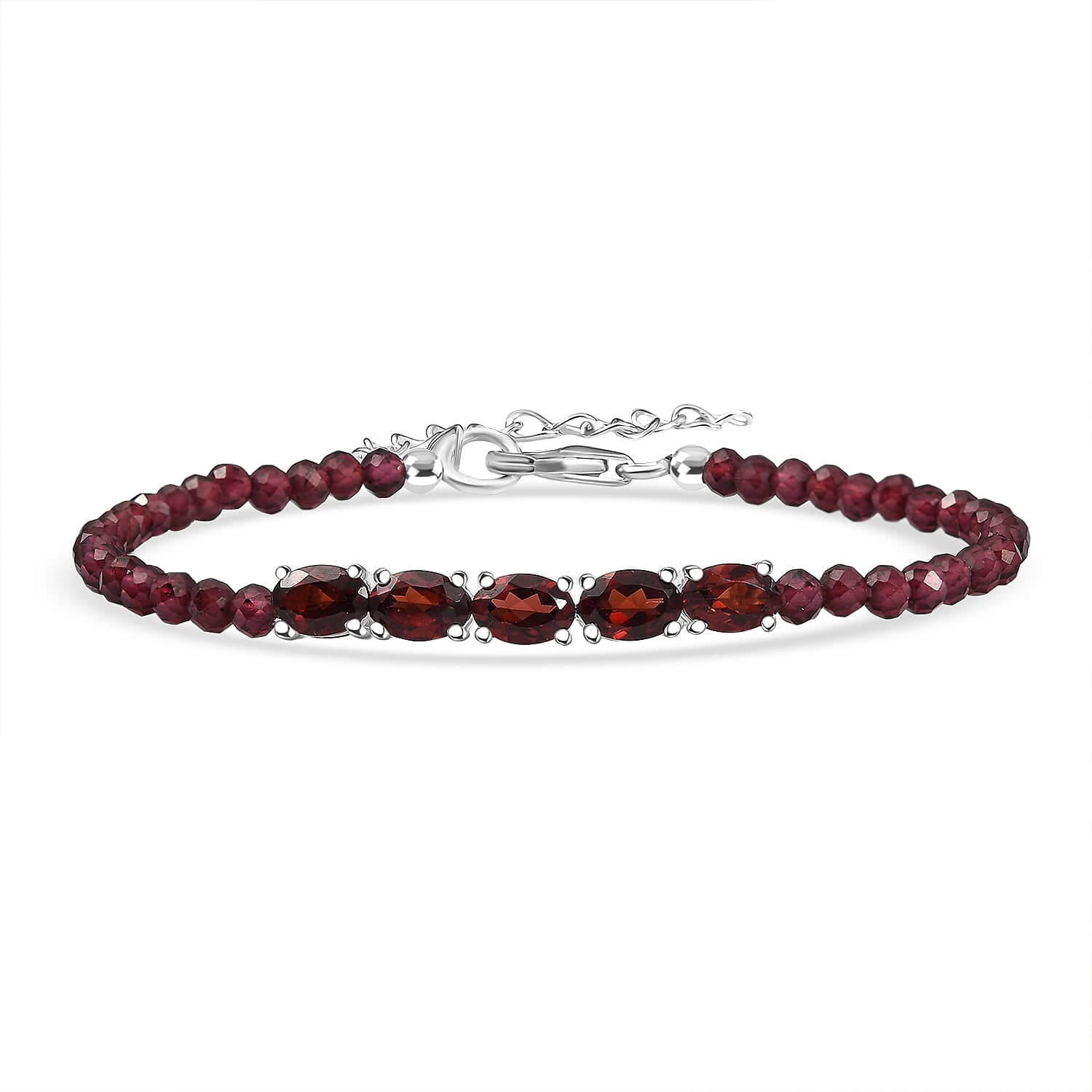 D'Joy Mozambique Garnet 10.50 ctw Beaded Bracelet in Sterling Silver (6.50-8.00In)