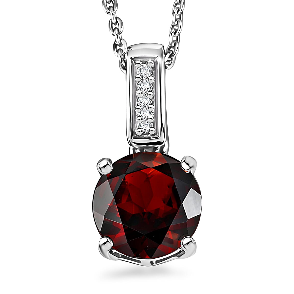 D'Joy Mozambique Garnet and White Zircon 1.30 ctw Pendant Necklace in Rhodium Over Sterling Silver 20 Inches