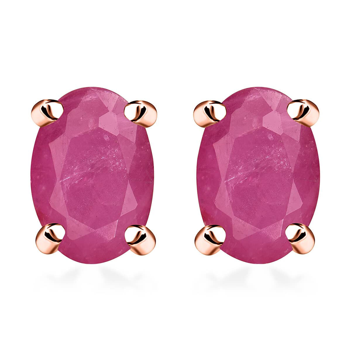 D'Joy Mozambique Ruby 1.16 ctw Solitaire Stud Earrings in Vermeil Rose Gold Over Sterling Silver (Del. in 10-12 Days)