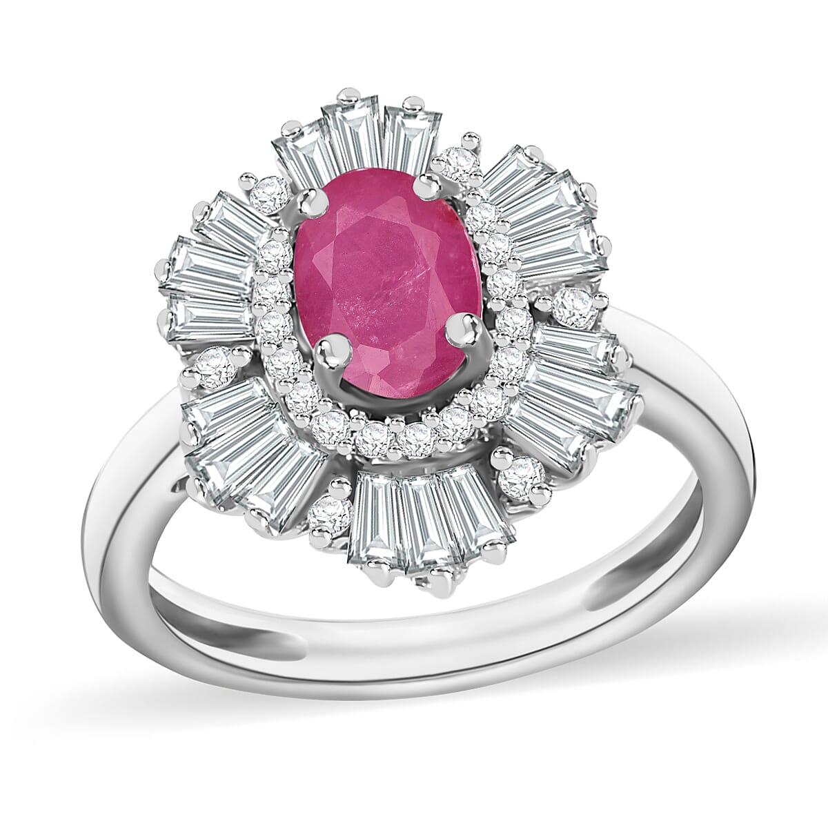 D'Joy Mozambique Ruby and White Zircon Snowflake Ring in Rhodium Over Sterling Silver 3.15 ctw (Size 11.0) (Del. In 10-12 Days)