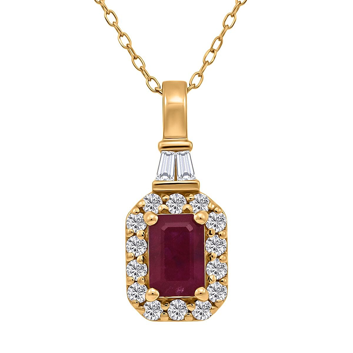 D'Joy Mozambique Ruby, Moissanite Pendant Necklace in 18K Vermeil YG Over Sterling Silver 1.00 ctw (20 Inches)