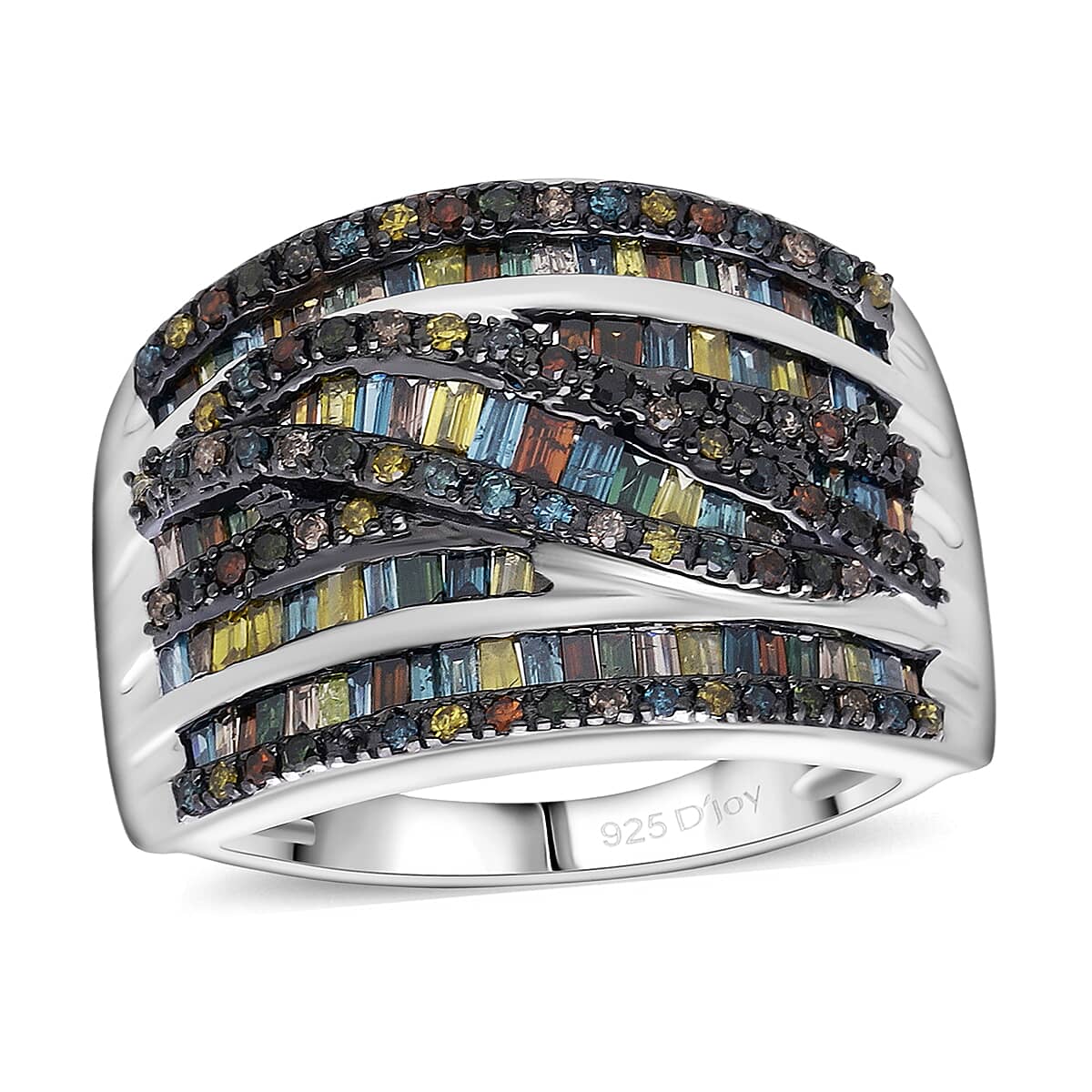 D'Joy Multi Color Diamond Ring in Rhodium Over Sterling Silver 1.00 ctw (Size 8.0)