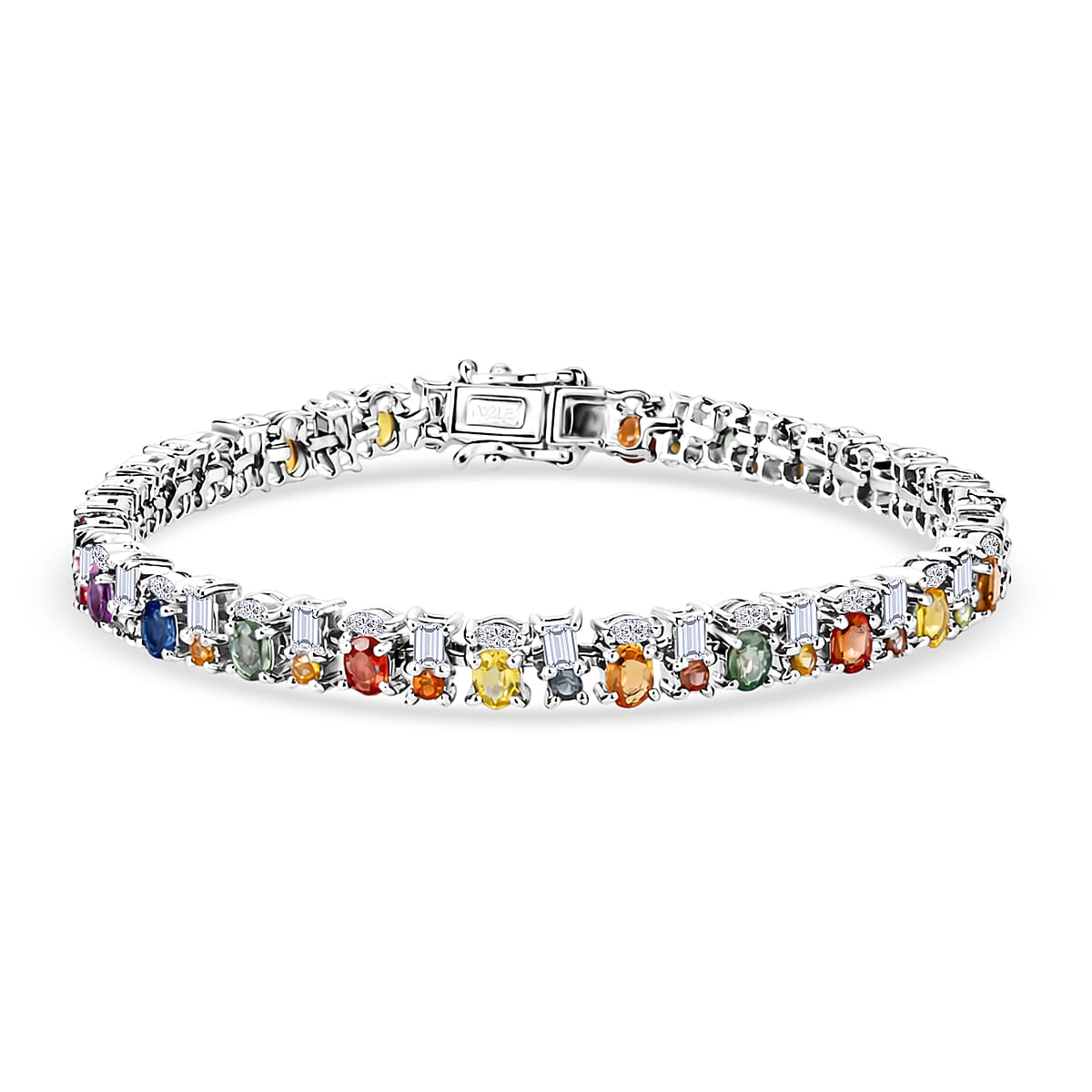 D'Joy Multi Sapphire and Moissanite 9.00 ctw Color & Light Fusion Bracelet in Rhodium Over Sterling Silver (8.00 In)