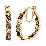 D'Joy Multi-Tourmaline Inside Out Hoop Earrings, Vermeil Yellow Gold Over Sterling Silver Hoop Earrings, Multi Tourmaline Earrings, In Out Hoops 9.40 ctw