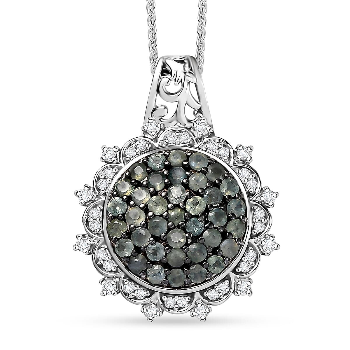 D'Joy Narsipatnam Alexandrite and Moissanite 1.35 ctw Vine & Bloom Pendant Necklace in Rhodium Over Sterling Silver 20 Inches