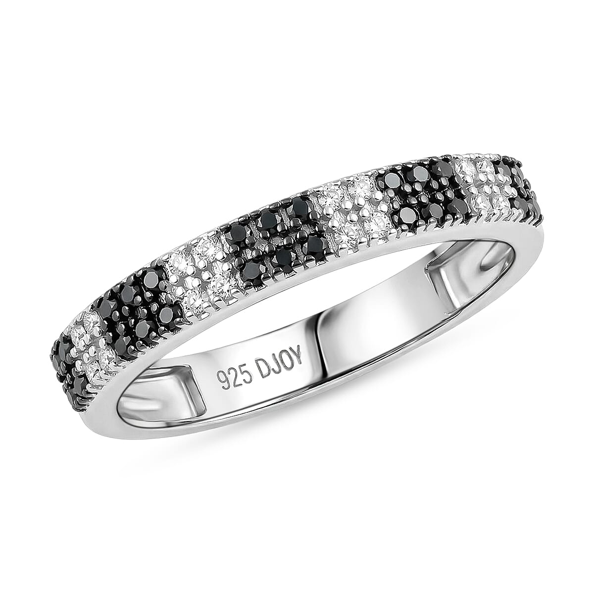 D'Joy Natural Black and White Diamond 0.25 ctw Band Ring in Rhodium Over Sterling Silver (Size 5.0)