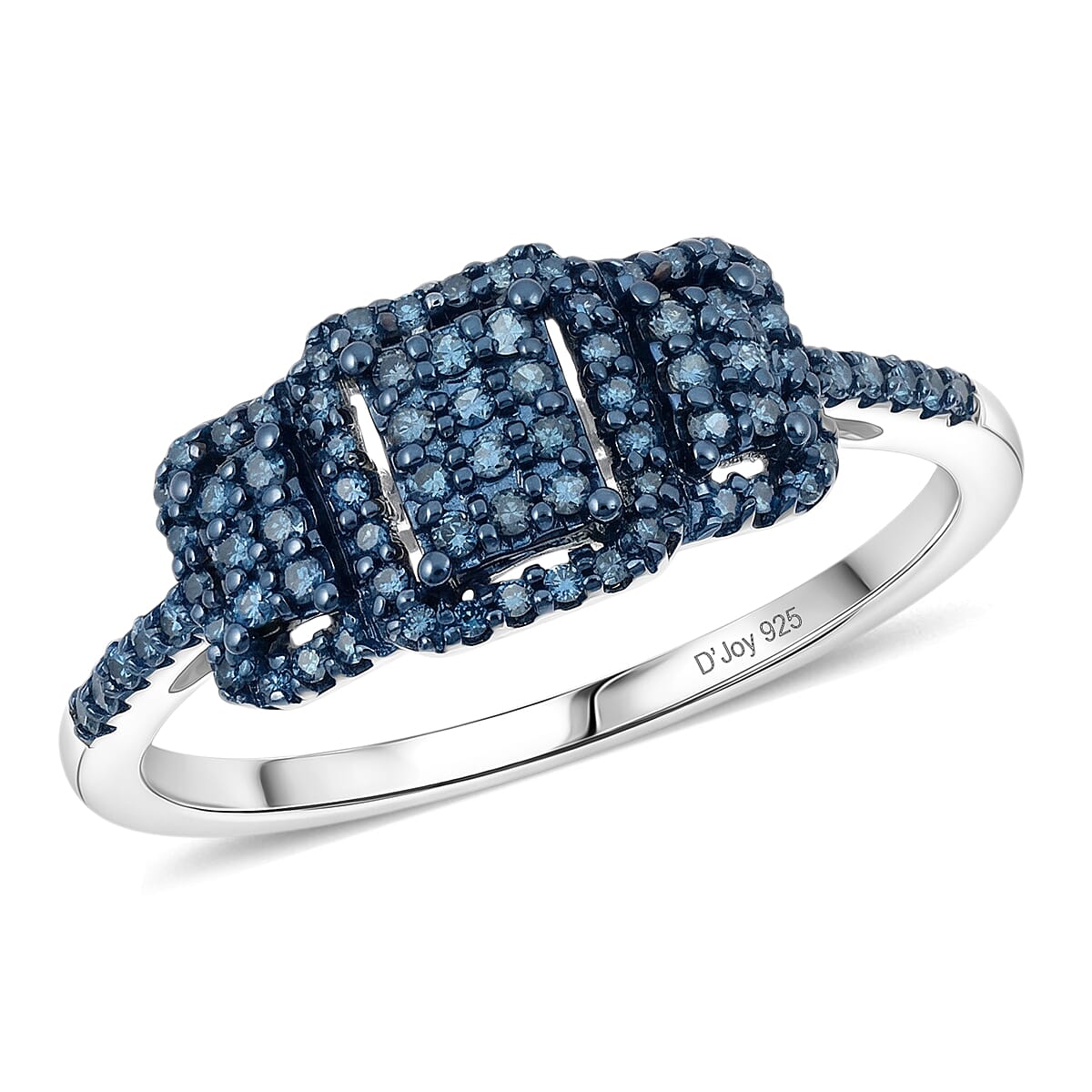 D'Joy Natural Blue Diamond 0.33 ctw Multi-row Cluster Ring in Rhodium Over Sterling Silver (Size 6.0)