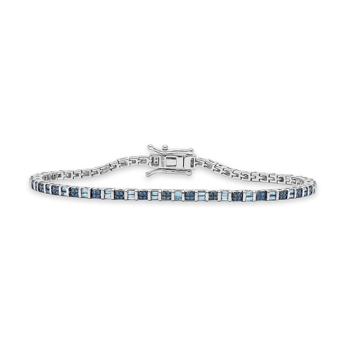 D'Joy Natural Blue Diamond 1.00 ctw Classic Tennis Bracelet in Rhodium Over Sterling Silver (7.25 In)