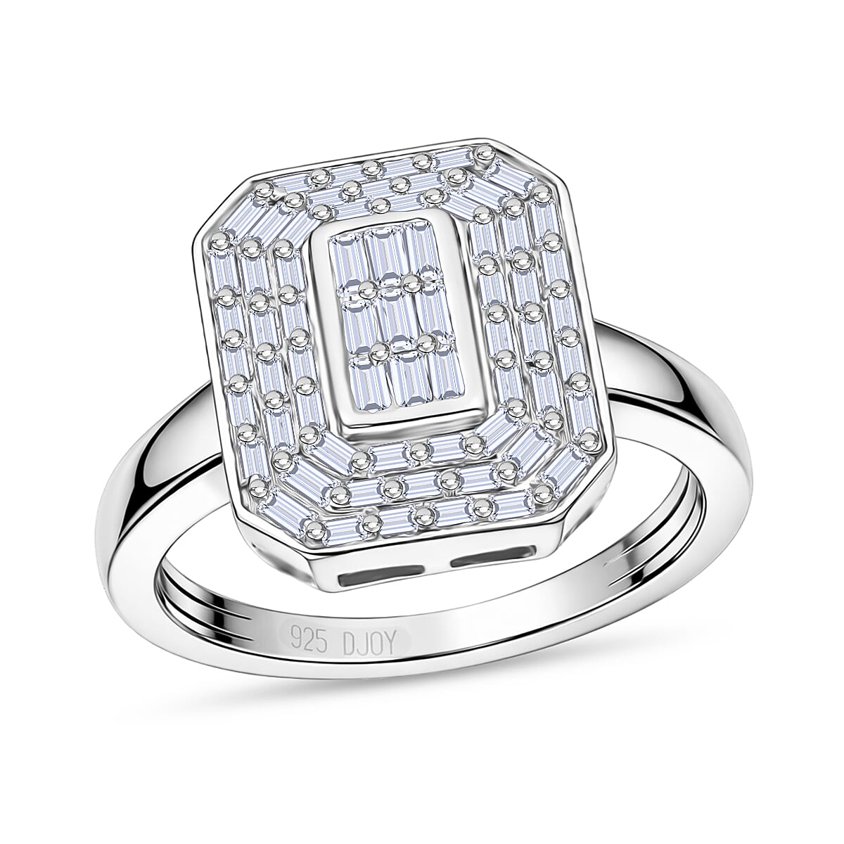D'Joy Natural Blue Diamond Cluster Halo Ring in Rhodium Over Sterling Silver (Size 10.0) 0.50 ctw