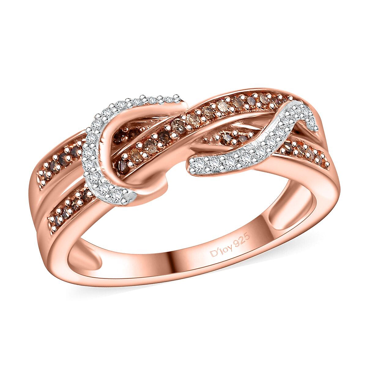 D'Joy Natural Champagne and White Diamond 0.25 ctw Infinity Ring in 18K Vermeil RG Over Sterling Silver (Size 9.0)