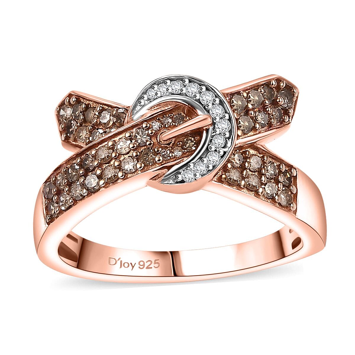 D'Joy Natural Champagne and White Diamond 0.50 ctw Buckle Ring in 18K Vermeil RG Over Sterling Silver (Size 9.0)