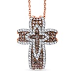 D'Joy Natural Champagne and Whtie Diamond Cross Pendant Necklace in 18K Vermeil RG Over Sterling Silver 0.50 ctw (20 Inches)
