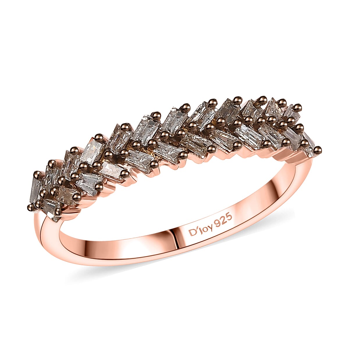 D'Joy Natural Champagne Diamond 0.25 ctw Art Deco Ring in 18K Vermeil Rose Gold Over Sterling Silver (Size 7.0)