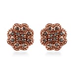 D'Joy Natural Champagne Diamond 0.25 ctw Blooming Flower Earrings in Vermeil Rose Gold Over Sterling Silver