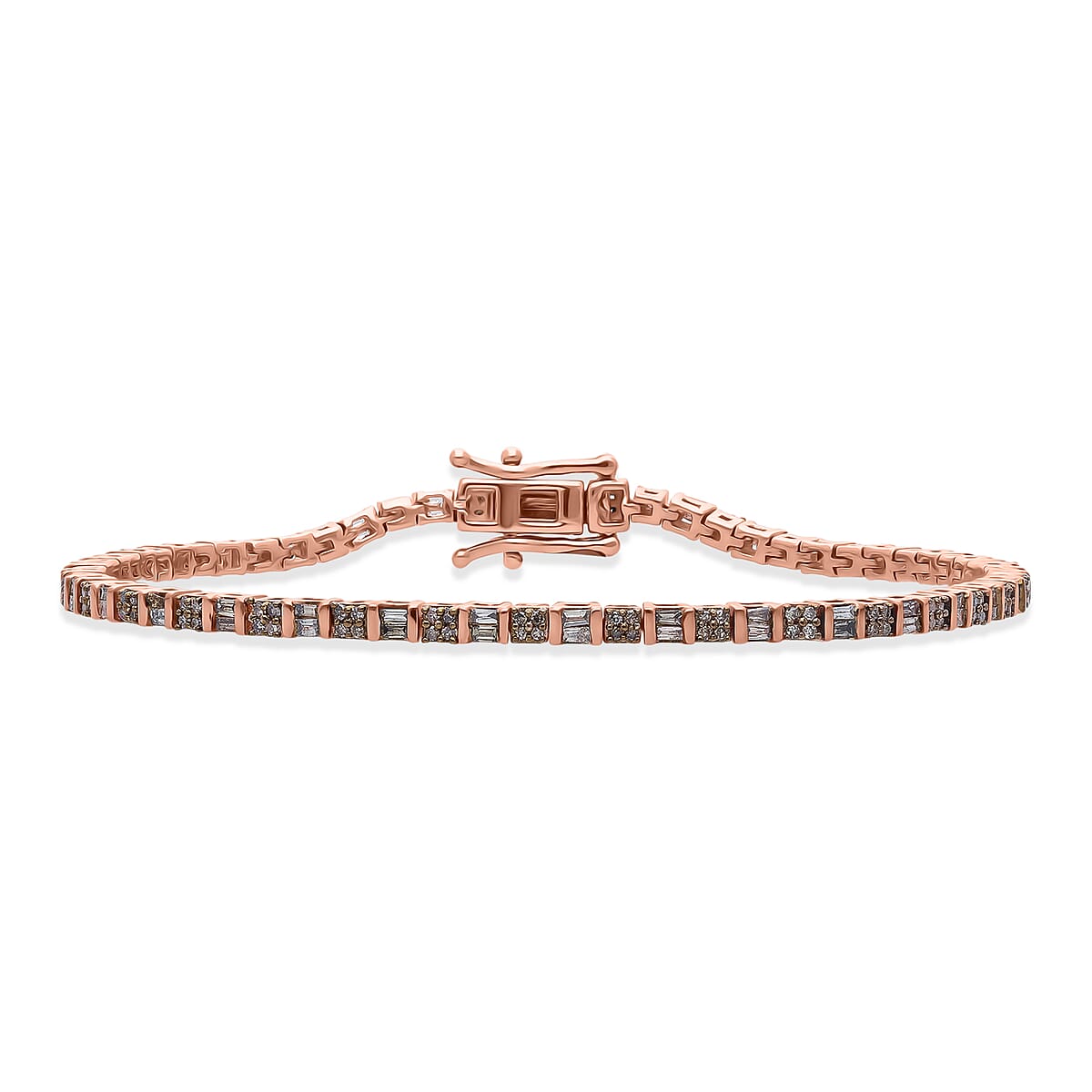 D'Joy Natural Champagne Diamond 1.00 ctw Classic Tennis Bracelet in Rhodium Over Sterling Silver (7.25 In)