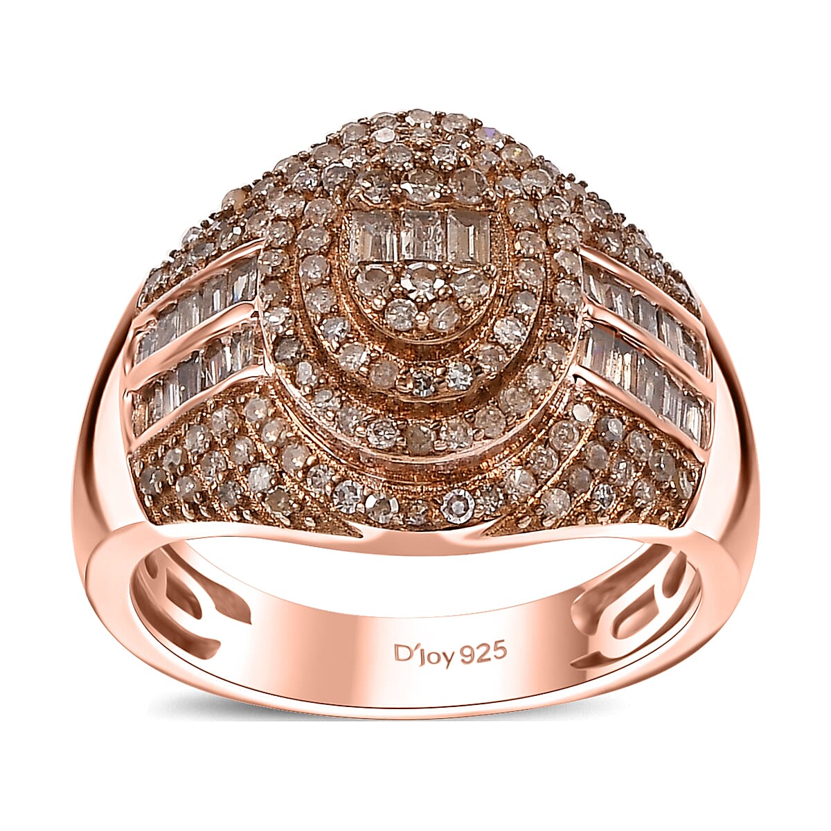 D'Joy Natural Champagne Diamond 1.00 ctw Pave Ring in 18K Vermeil Rose Gold Over Sterling Silver (Size 8.0)