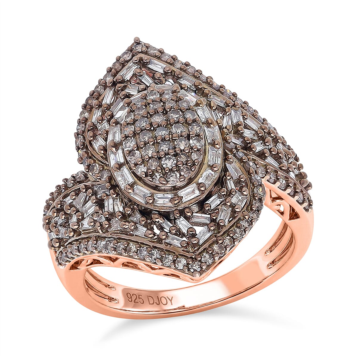 D'Joy Natural Champagne Diamond 1.00 ctw Ring in 18K Vermeil Rose Gold Over Sterling Silver (Size 7.0)