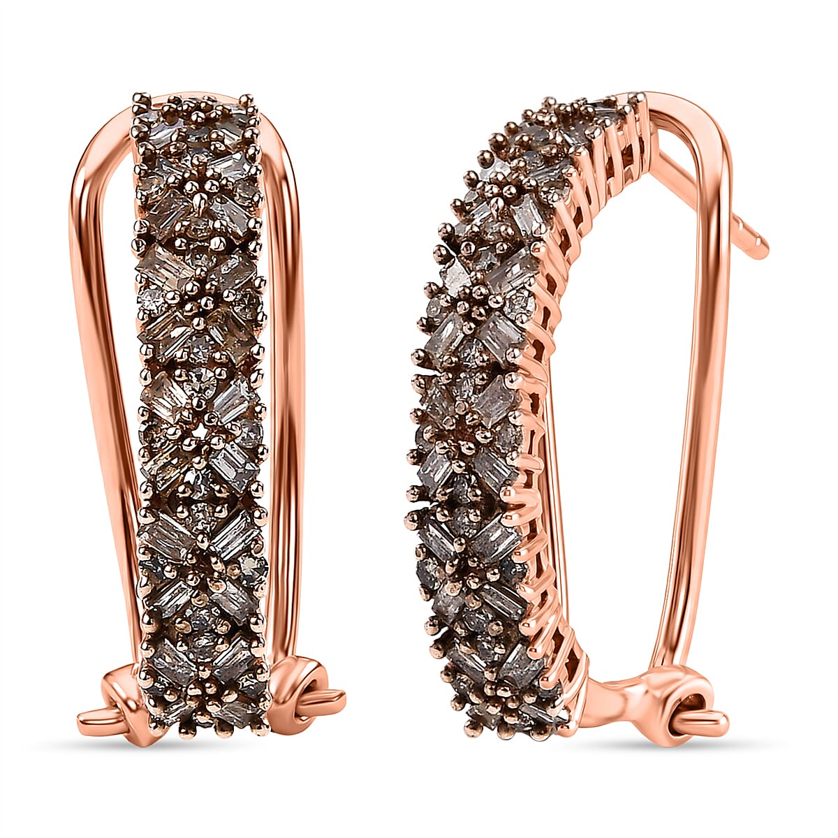 D'Joy Natural Champagne Diamond 1.00 ctw Royal Crossfire Earrings in 18K Vermeil Rose Gold Over Sterling Silver